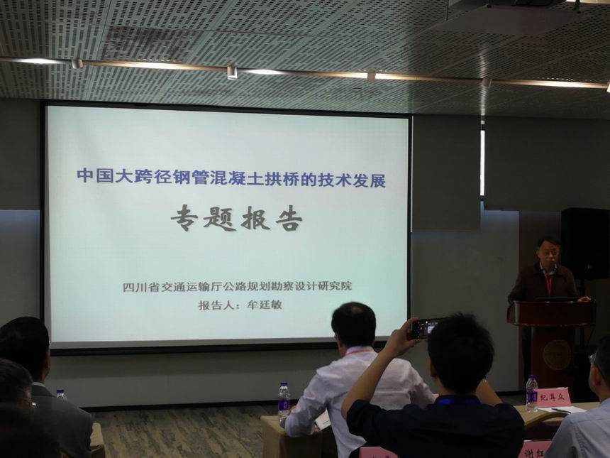 會上,牟總在大會上作了題為“”中國大跨徑鋼管混凝土拱橋的技術(shù)發(fā)展》的專題報告,主要結(jié)合我院設(shè)計的重慶巫山長江大橋、四川合江長江三橋、四川合江長江一橋和廣西平南三橋勘察設(shè)計經(jīng)驗,全面系統(tǒng)地介紹了我國鋼管混凝土拱橋科技的發(fā)展歷程,充分展示了中國交通四川名片,反響強烈。