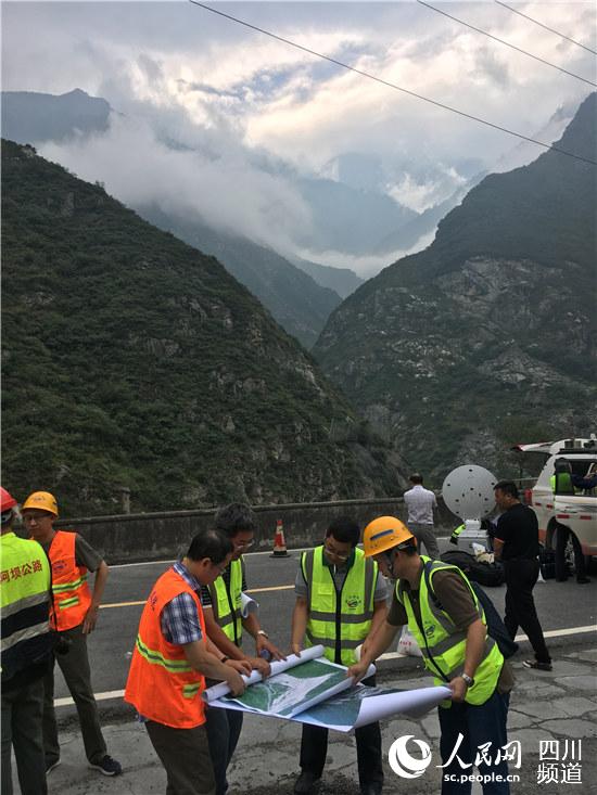 對(duì)此,在四川省公路規(guī)劃勘察設(shè)計(jì)研究院有限公司的統(tǒng)籌安排下,二分院全力投入應(yīng)急搶險(xiǎn)工作,共派出9批共42人次趕往現(xiàn)場(chǎng)。楊昌鳳便是其中的一員。災(zāi)情就是命令,當(dāng)接到通知時(shí),8月20日中午他和另外2名同事作為第2批次搶險(xiǎn)小組立刻前往救災(zāi)現(xiàn)場(chǎng)。據(jù)楊昌鳳回憶,當(dāng)時(shí)在前往災(zāi)區(qū)的路上,雨勢(shì)依舊不減,他們的內(nèi)心都十分忐忑,擔(dān)心這樣下去,災(zāi)害情況會(huì)進(jìn)一步加大。到達(dá)綿虒點(diǎn)位后,他們發(fā)現(xiàn)高速公路已經(jīng)被泥石流掩蓋,通訊也是中斷的,只能從一座危橋步行前往下一個(gè)點(diǎn)位與第1批次的同事匯合。這一走就走了2個(gè)小時(shí),到達(dá)目標(biāo)點(diǎn)位之后,楊昌鳳和同事們只吃了袋面包墊肚子便立即投入工作。災(zāi)損調(diào)查、方案踏勘,商討處治措施,同時(shí)安排布置開展航飛、檢測(cè)等專業(yè)進(jìn)場(chǎng),收集第一手?jǐn)?shù)據(jù)資料;當(dāng)晚又連夜召開技術(shù)方案研討會(huì),與后方技術(shù)保障組討論重要控制點(diǎn)搶通方案,連夜制作災(zāi)損示意圖和保通示意圖,他們?yōu)榈缆窊屚ūMㄌ峁┝擞辛Φ募夹g(shù)支撐。