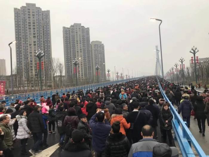 天藍(lán)色的外觀,遠(yuǎn)遠(yuǎn)看上去,就像是一條絲帶飄揚(yáng)在長(zhǎng)江之上,輕盈靈動(dòng)。1月30日一大早,宜賓南溪長(zhǎng)江公路大橋擠滿了等候通行的群眾。當(dāng)?shù)乩习傩张d高采烈地踏上大橋,在人行道上留影;身后,汽車、摩托車平穩(wěn)地在橋面開(kāi)行著。