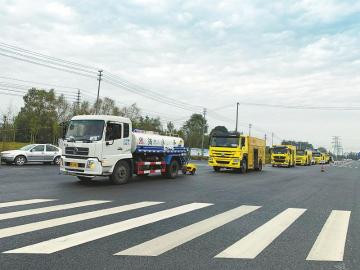 檢測現(xiàn)場,近40輛路面智能檢測車和橫向力系數(shù)車排成一排,穿著印有“道路與橋梁工程計量站”字樣反光背心的工作人員逐車靜態(tài)檢測后,又指揮車輛上路動態(tài)檢校。