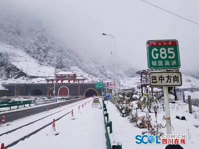 巴陜公司副總經(jīng)理周雄華展示了一張照片:大地被白雪覆蓋,有著“G85銀昆高速巴中方向”字牌的高速公路車道,僅有兩道黑色的車轍露出?!?0天前,陜西那邊下了今年第一場大雪?!彼f,這是當(dāng)時(shí)米倉山隧道陜西端的場景,而米倉山隧道四川端是難得下雪的,隧道兩端兩個(gè)世界,給安全運(yùn)營帶來不小壓力。確保行車安全,這一年多來,川陜兩地?cái)y手,建立起協(xié)商聯(lián)動(dòng)機(jī)制,也總結(jié)了一些經(jīng)驗(yàn)。