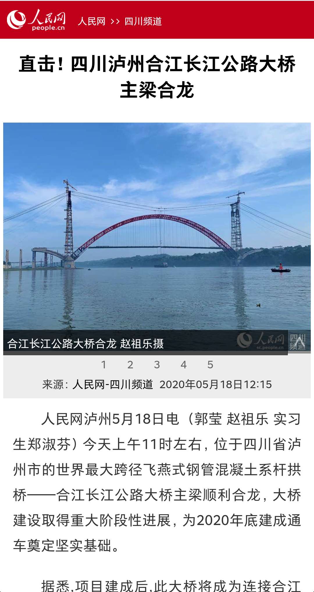 四川日報:“基建狂魔”又一力作!四川合江長江公路大橋的主梁成功合龍!
