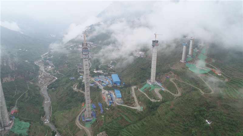 高達(dá)196米的6號主墩順利封頂 (圖片由四川省交通運(yùn)輸廳提供)