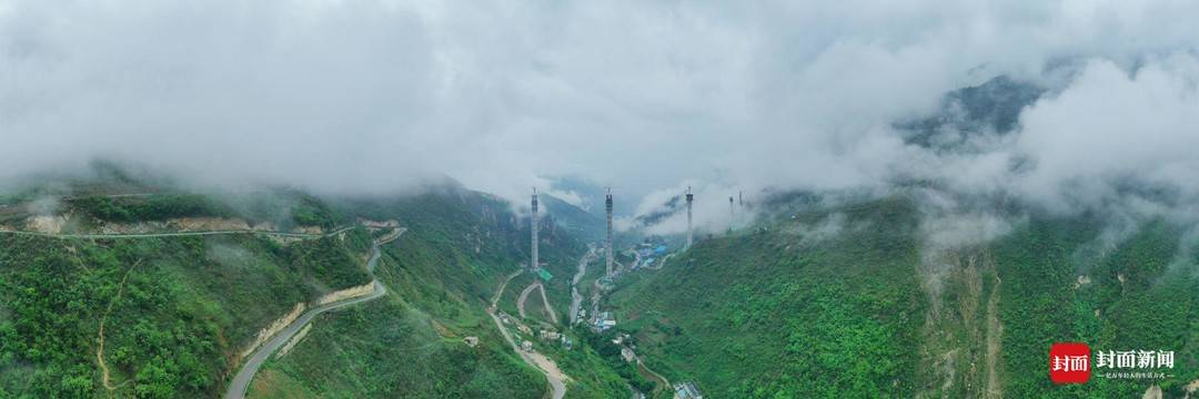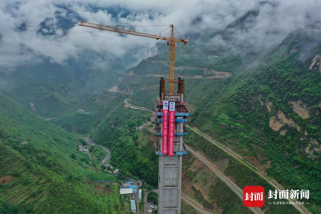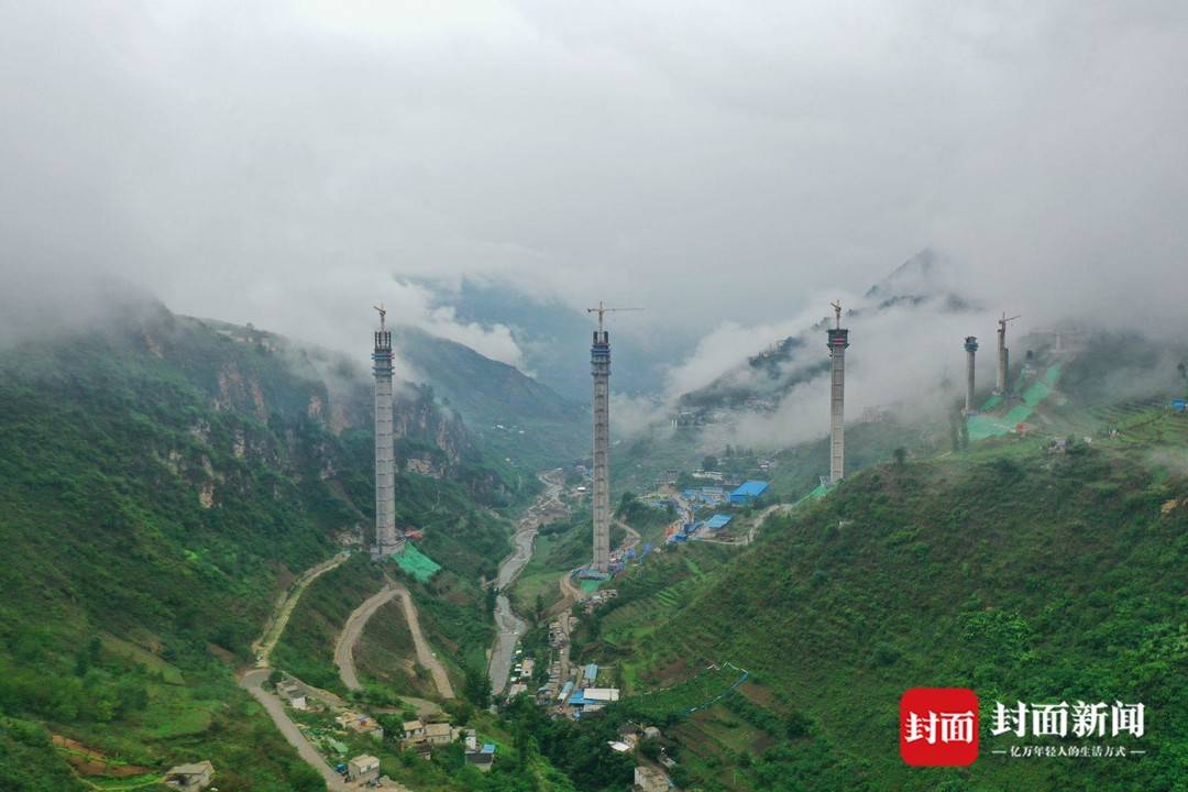 23日上午,封面新聞記者在金陽縣城看到,金陽河特大橋佇立在金陽河谷中央,非常壯觀,從頂部到基座,6號橋墩的高度足足有196米。