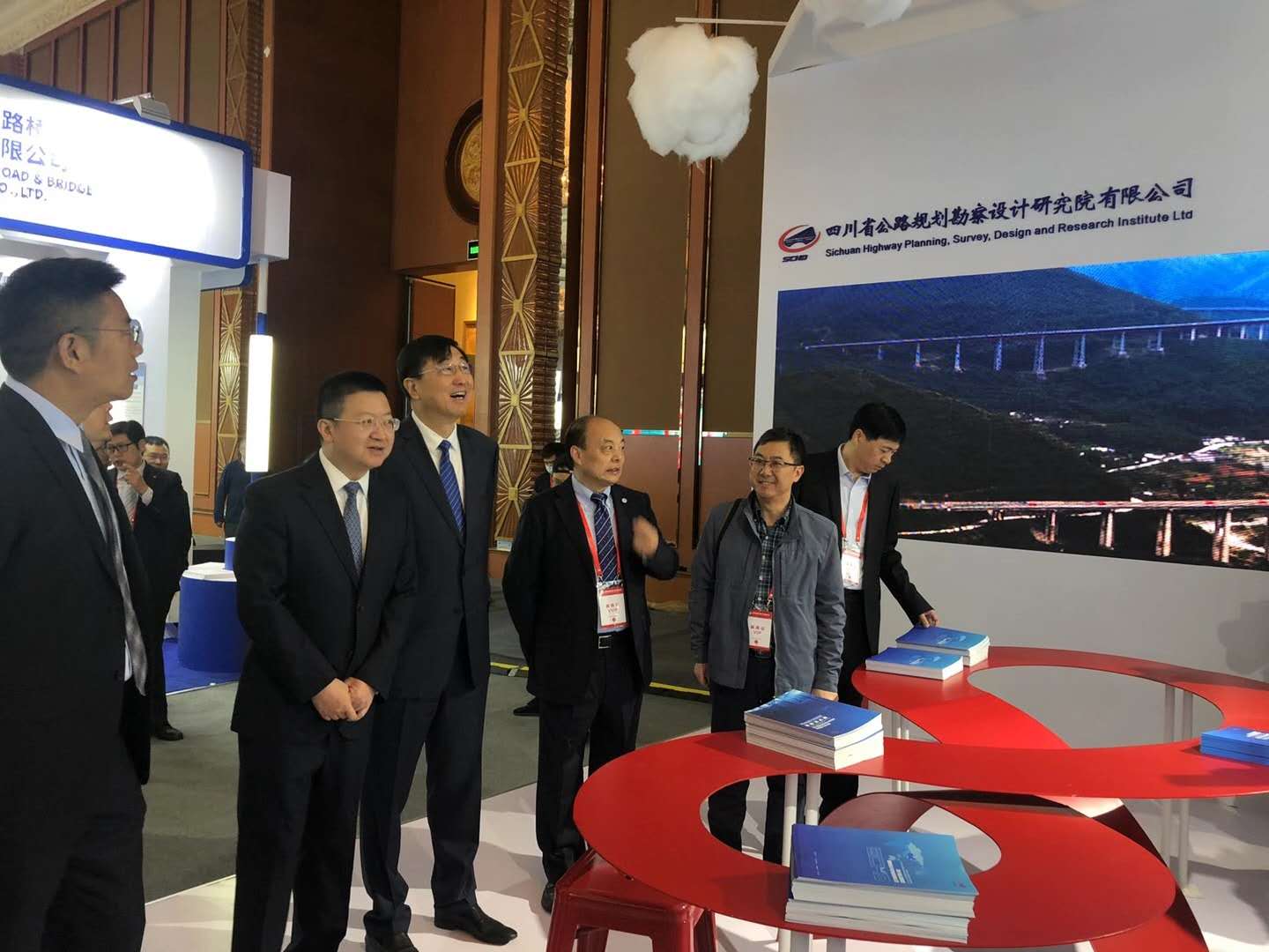 交通運輸部科技司一級巡視員洪曉楓、四川省交通運輸廳科信處處長柏吉瓊等領(lǐng)導(dǎo)蒞臨公司展臺