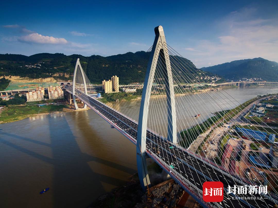 7月1日,四川宜賓鹽坪壩長江大橋正式通車。鹽坪壩長江大橋是一座主跨480米的雙塔雙索面混合式疊合梁斜拉橋,南北岸主塔高182.922米,相當(dāng)于60層樓高,其“魚躍長江”索塔造型為全國首創(chuàng)。大橋通車后,將極大緩解宜賓城區(qū)交通壓力。