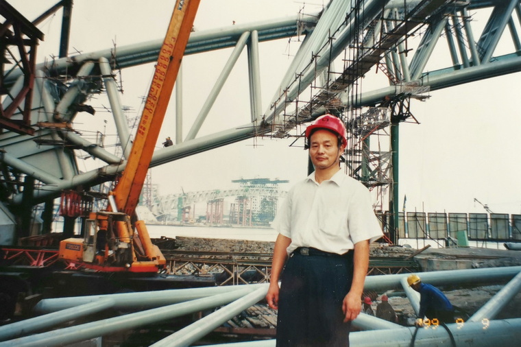 鄭遠(yuǎn)鵠在廣州Y髻沙大橋工地上