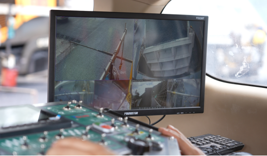 在傳統(tǒng)的特長隧道瀝青路面施工方式下,施工人員要應(yīng)對隧道內(nèi)高溫密閉、作業(yè)空間局促的物理限制,更要直面有毒煙霧積聚、施工質(zhì)量管控困難等挑戰(zhàn),安全、質(zhì)量與效率的矛盾日益凸顯。為有效解決以上難題,樂西高速馬昭段路面項目團(tuán)隊以隧道路面“黑科技”智控全局,在全省范圍內(nèi)首次應(yīng)用隧道遠(yuǎn)程控制攤鋪系統(tǒng),該系統(tǒng)由遠(yuǎn)程通信系統(tǒng)、遠(yuǎn)程料車助手、實時語音系統(tǒng)和遠(yuǎn)程監(jiān)控系統(tǒng)組成。隧道外部指揮車端搭建1:1控制臺,通過遠(yuǎn)程高速低延抗干擾通信技術(shù)、遠(yuǎn)程實時控制系統(tǒng)技術(shù)、實時語音對講技術(shù),實現(xiàn)隧道瀝青混凝土路面無人攤鋪,極大改善了施工人員操作環(huán)境。運用該系統(tǒng),使原本需要隨攤布車動態(tài)實施攤鋪作業(yè)的施工人員移至隧道外遠(yuǎn)程操控,縮減人員75%,縮短施工周期10%-20%,整體效率提升20%,施工質(zhì)量也得到有效保障,真正實現(xiàn)了安全、質(zhì)量與效率的三方共贏。