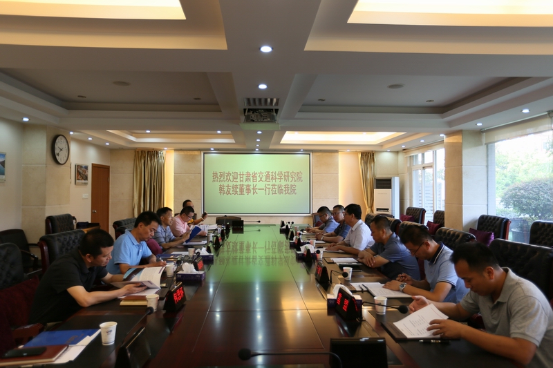 7月27日上午,甘肅省交通科學(xué)研究院有限公司董事長(zhǎng)韓友續(xù)一行6人來(lái)我院座談交流。會(huì)上,我院簡(jiǎn)要介紹了發(fā)展戰(zhàn)略、改革情況、經(jīng)營(yíng)管理、科研成果轉(zhuǎn)化及人力資源管理等有關(guān)情況。雙方表示將以此次交流為契機(jī),進(jìn)一步發(fā)揮各自優(yōu)勢(shì),建立長(zhǎng)期合作機(jī)制,加強(qiáng)學(xué)習(xí)交流,互相促進(jìn)、共同提高、共同發(fā)展。