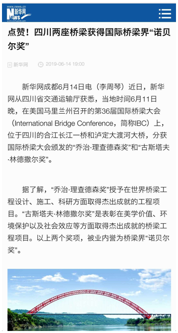 3.新華網(wǎng)——點贊!四川兩座橋梁獲得國際橋梁界“諾貝爾獎”