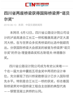 5. 中國交通新聞網(wǎng)——四川省兩座橋梁獲得國際橋梁界“諾貝爾獎”