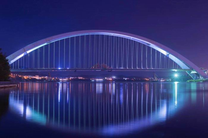 11月27日,我院設(shè)計的廣西柳州官塘大橋正式建成通車,為具有“橋梁博物館”之稱的柳州市新添了第21座跨江大橋,也為廣西壯族自治區(qū)成立60周年獻上一份民生“大禮”。柳州官塘大橋橫跨柳江,主跨457m,設(shè)計時速60Km/h,雙向6車道,是目前世界第一大跨度有推力提籃式鋼箱拱橋,世界第九大跨度的鋼箱拱橋。該橋采用低位拼裝、大節(jié)段整體提升法安裝主拱肋,整體提升的中拱段跨徑262米、總提升重量5885噸,提升高度67.27米,創(chuàng)下了整體提升拱肋跨徑、提升總重量、提升高度三項“世界第一”的紀(jì)錄。