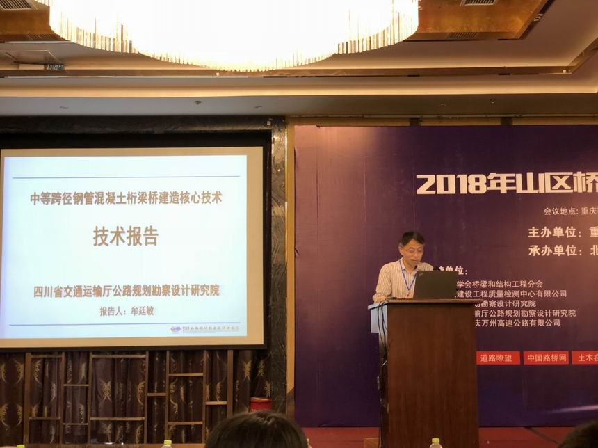 7月13日至15日,由重慶交通大學和橋梁工程與技術(shù)網(wǎng)聯(lián)合主辦的“2018年山區(qū)橋梁建設(shè)與管養(yǎng)技術(shù)大會”在重慶召開。我院作為會議支持單位,由院總工程師牟廷敏帶隊共4人參加會議,考察了橋梁建設(shè)與管養(yǎng)工地,就山區(qū)復雜條件橋梁建設(shè)與養(yǎng)護技術(shù)進行了充分交流。會上,我院總工程師牟廷敏作了主題為“山區(qū)中等跨度鋼管混凝土桁梁橋建設(shè)核心技術(shù)”專題報告,介紹了山區(qū)復雜條件中等跨度橋梁現(xiàn)狀、需要攻克的技術(shù)難題、核心技術(shù)和技術(shù)成果推廣應(yīng)用前景等內(nèi)容,反響強烈,受到主辦方的高度評價。