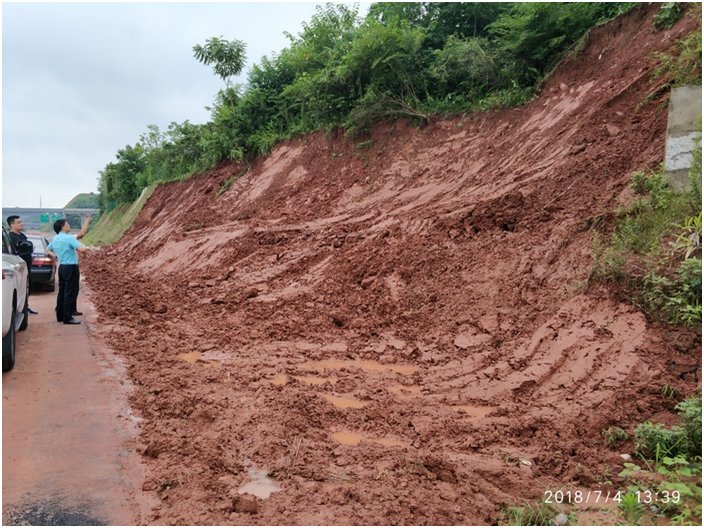 受當(dāng)前連續(xù)強(qiáng)降雨影響,去年底通車的樂山至自貢高速公路樂山城區(qū)連接線路基邊坡水毀現(xiàn)象嚴(yán)重。7月4日,我院主動(dòng)與業(yè)主溝通對(duì)接,及時(shí)趕往現(xiàn)場(chǎng)開展后期服務(wù),重點(diǎn)勘察了已出現(xiàn)水毀情況的邊坡,提出了搶險(xiǎn)和永久治理的處治建議,并對(duì)存在隱患的邊坡進(jìn)行了排查,為項(xiàng)目安全運(yùn)營提供了技術(shù)保障,得到業(yè)主的高度評(píng)價(jià)。