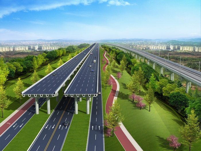 天府新區(qū)新機(jī)場快速通道分為主線K線以及天府支線A線,平面上與正在建設(shè)的成都天府國際機(jī)場高速公路同走廊,屬于新機(jī)場高速公路的底層道路。