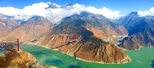 位于瀘定縣境內(nèi),是一座1100m單跨鋼桁梁懸索橋,橋?qū)?4.5m,2018年12月正式通車。該橋是建設(shè)在高海拔、高地震烈度區(qū)、復(fù)雜風(fēng)場環(huán)境下的超大跨徑鋼桁梁懸索橋。