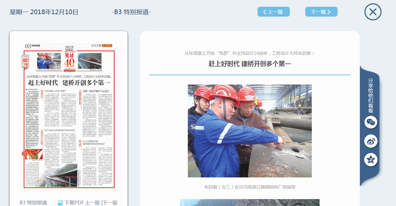 對于這一好消息,該橋設計者——四川省交通運輸廳公路規(guī)劃勘察設計研究院總工程師、教授級高級工程師牟廷敏感受頗深。自大橋建設以來,牟廷敏曾無數(shù)次來到現(xiàn)場進行技術指導,甚至親自指導工人如何焊接。而這,只是他30年辛勤工作的一個縮影。牟廷敏說,“從我1988年參加工作至今,這30年是中國基本建設大發(fā)展的30年,作為一個從事公路工程方面的設計師來說,我們趕上了一個好時代。”
