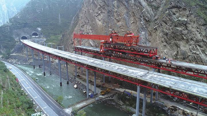 從汶川往理縣方向行進,車水馬龍的國道317線上,一座造型酷炫的紅色鋼橋與國道并行,猶如一道絢麗彩虹,這就是汶川克枯大橋。11月初,隨著汶川克枯大橋的順利合龍,不僅標志著全國首座“全橋不需要模板”的新型大橋在四川誕生,也意味著汶馬高速距離年內實現(xiàn)通車100公里以上的目標再近一步。