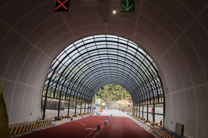 二、創(chuàng)新性提出“保暖內衣+長衣袖式”隧道結構綜合防凍技術,并在隧道洞口設立了防雪透光棚,既保證隧道洞口防凍、防雪,又有效緩解了駕乘人員的“黑白洞”效應。