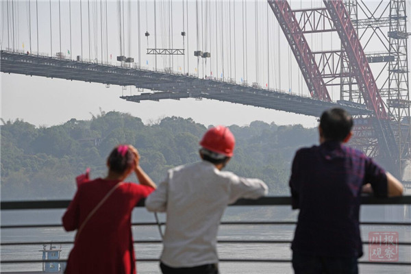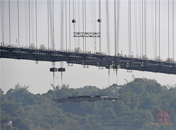 今天上午11時(shí)許,隨著最后一段橋面梁的吊裝到位,四川合江長江公路大橋的主梁成功合龍,大橋主體工程關(guān)鍵節(jié)點(diǎn)完成建設(shè),為2020年底建成通車奠定基礎(chǔ)。