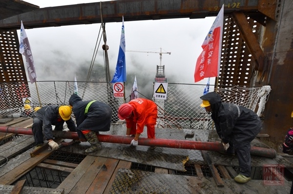 四川鐵投四川路橋金陽河特大橋項目部工程科科長俞坤升介紹,針對大橋建設難點,項目部自行研發(fā)多項“黑科技”,力克安全風險和技術難關。比如,項目研發(fā)的自爬式多功能提升系統(tǒng),可實現(xiàn)鋼管安裝、C80澆筑、外包及隔板施工同步作業(yè),節(jié)約工期3個月,并將重達45噸的鋼管輕松吊到墩頂。
