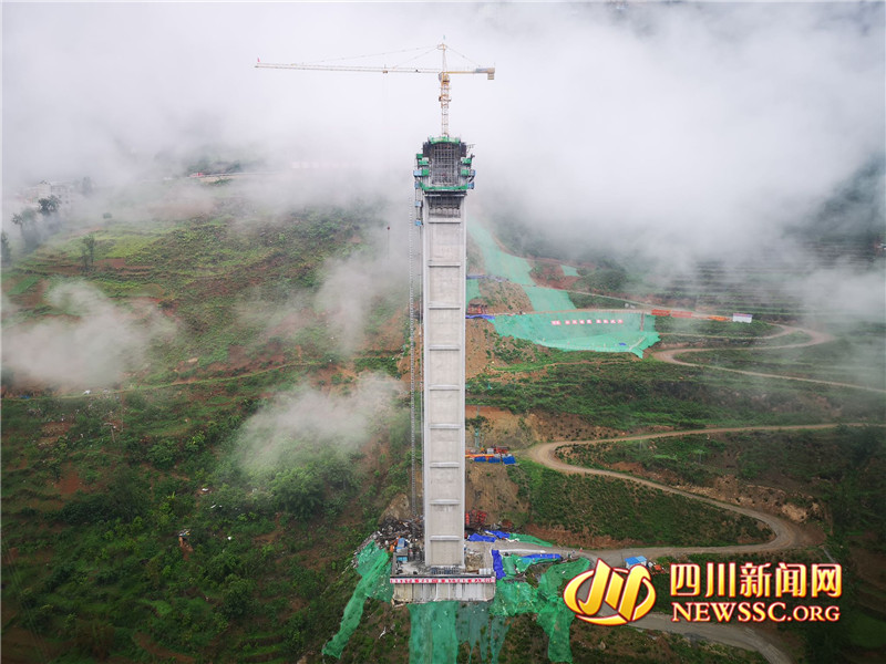 高達(dá)196米的6號主墩順利封頂 (圖片由四川省交通運輸廳提供)