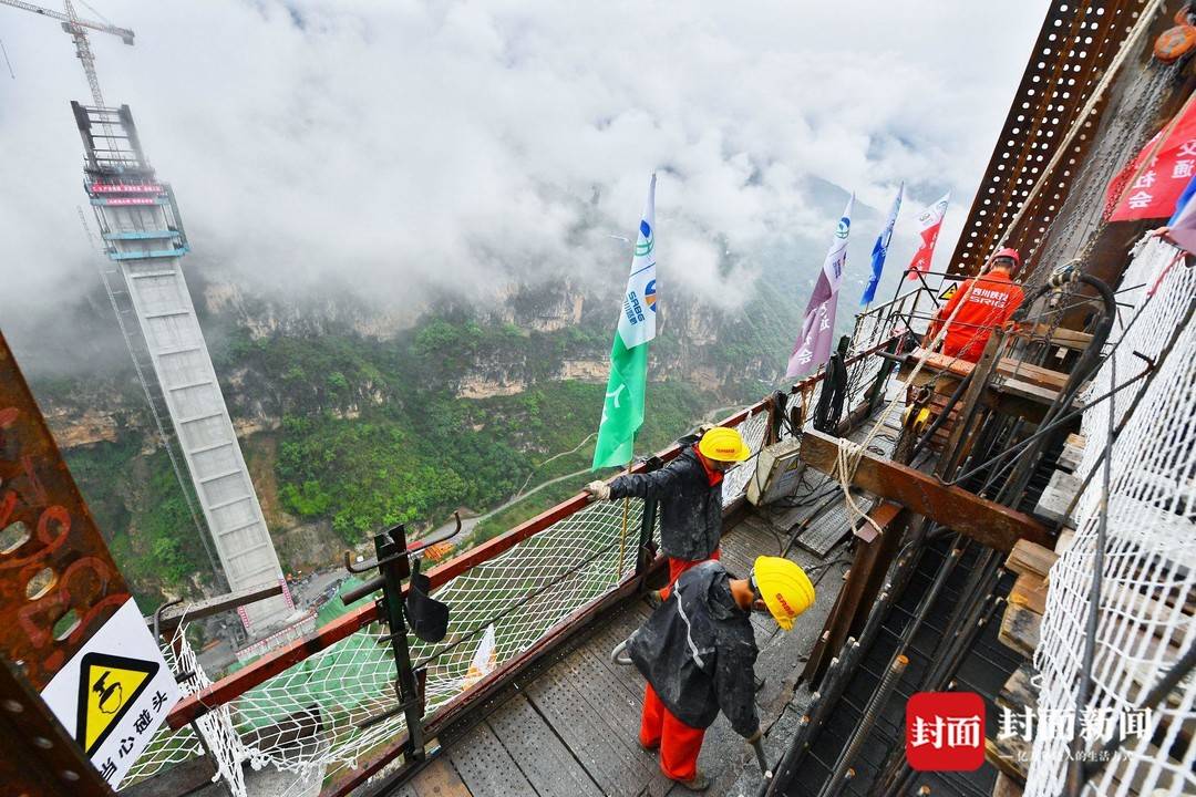 6月23日,金陽(yáng)河特大橋6號(hào)主墩順利封頂,196米的高度,也刷新了世界同類橋梁的橋墩高度。