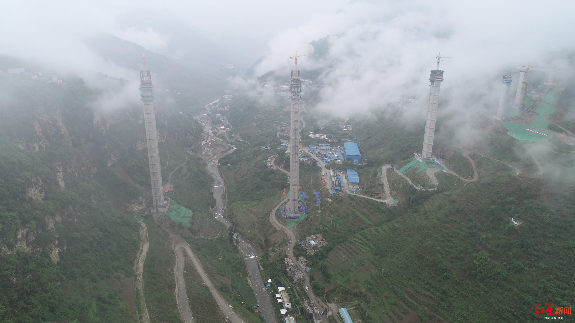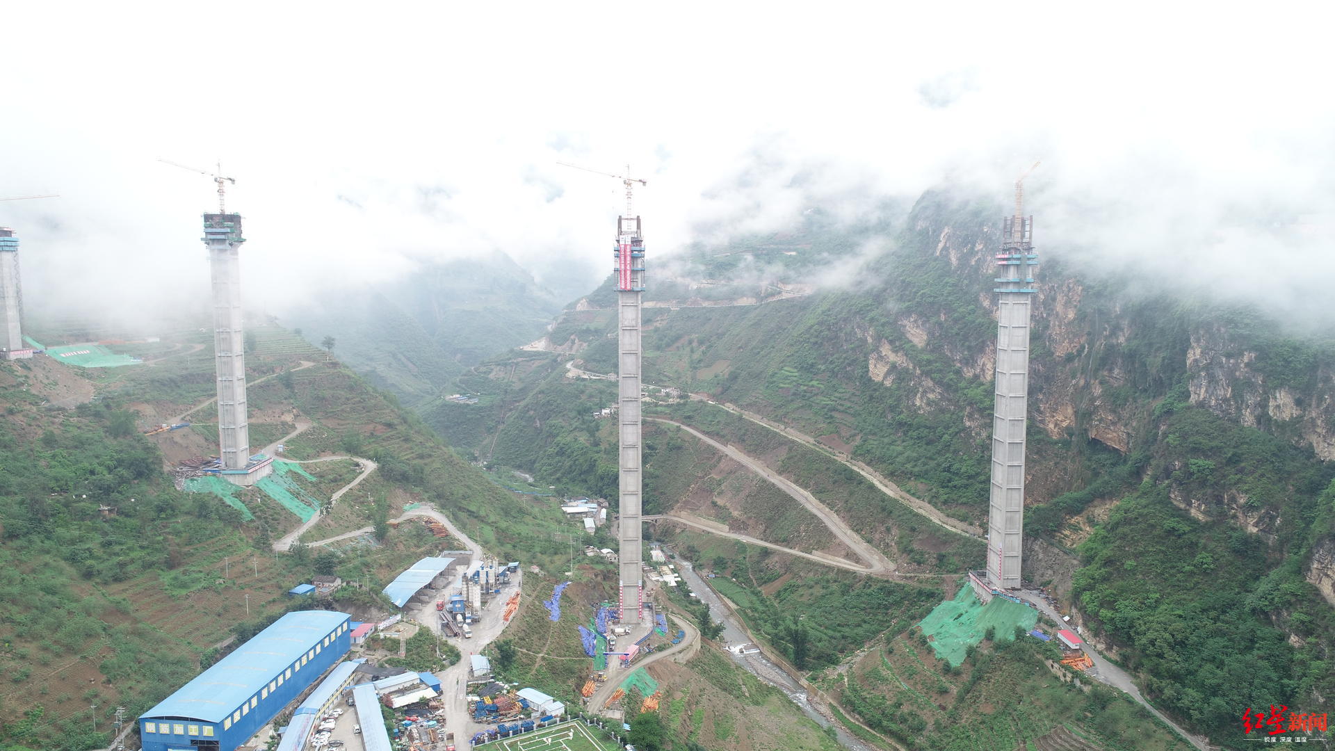 紅星新聞記者從四川省交通運輸廳獲悉,6月23日,金陽河特大橋高達196米的6號主墩順利封頂,世界最高鋼構(gòu)墩橋梁橋墩的高度紀錄“易主”金陽河特大橋。