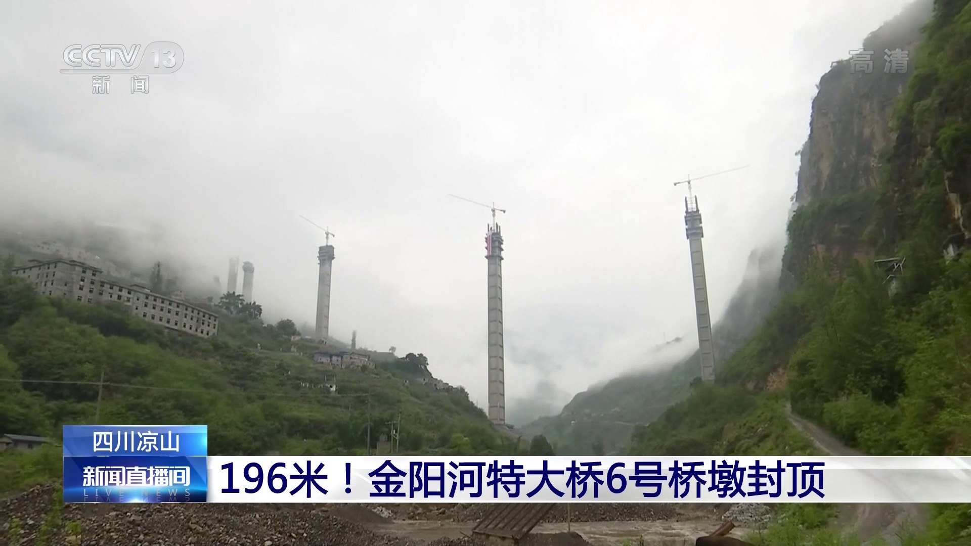 四川涼山州金陽河特大橋6號橋墩昨天(23日)封頂。196米的高度,也創(chuàng)下了新的工程紀錄。