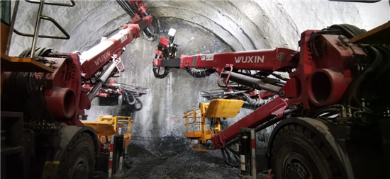 三臂鑿巖臺(tái)車開鑿炮眼。四川公路設(shè)計(jì)院供圖
