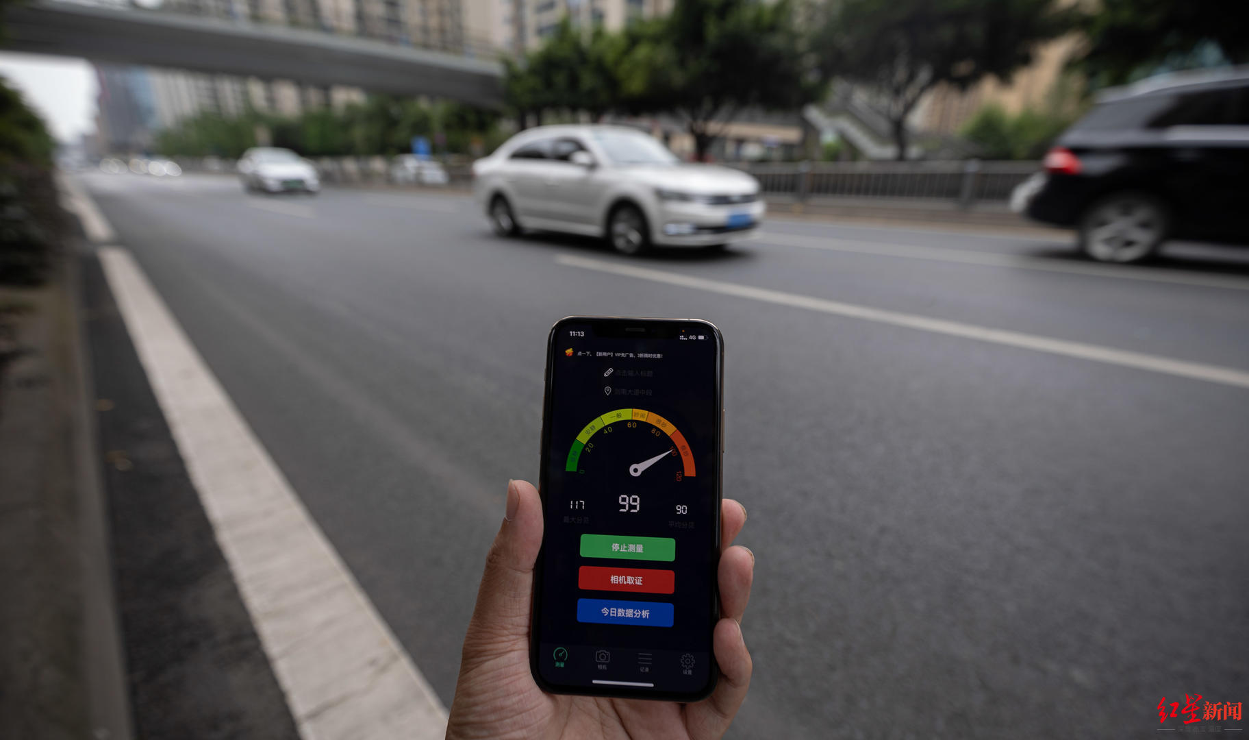 ▲劍南大道盛邦街路口 普通路面車輛通過(guò)時(shí)噪聲