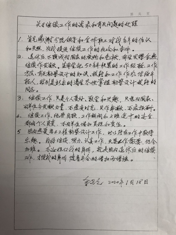 余進(jìn)元繼續(xù)工作的申請(qǐng)