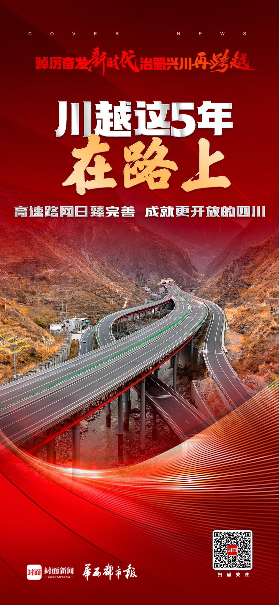 5年來(lái),在巴蜀大地上,延伸出雅康高速、巴陜高速、成安渝高速、成宜高速等諸多重要的高速通道,全省高速公路通車總里程從2016年底的6523公里增長(zhǎng)到2021年底的8608公里,位居全國(guó)第三;5年建成高速公路出川通道11條,目前共有26條。