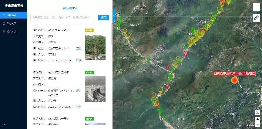 前后方專家組商討提出了應急處置措施及建議,編制完成《“6.1”蘆山6.1級地震公路應急調查報告》。同時通過災害調查系統(tǒng),每天及時將公路結構物病害情況以及應急處置措施反饋至抗震救災指揮部,為搶通保通決策部署提供了詳實的基礎資料和科學依據(jù)。
