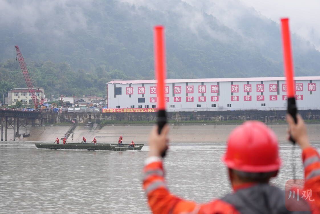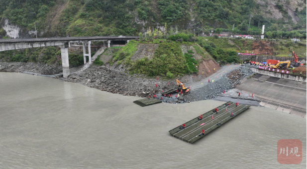 今天,省交通運輸廳組織四川省公路交通應急裝備物資儲備中心、蜀道集團聯(lián)合開展應急搶險,打通水陸聯(lián)運應急通道,用動力舟橋裝運大型機械設(shè)備到斷道點,對聯(lián)合村隧道至新華鎮(zhèn)約9公里路段,形成多點作業(yè)面同步搶通。