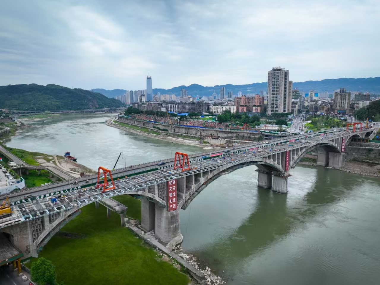 始建于 1973 年的宜賓市岷江大橋,是宜賓首座公路橋梁,也是我國20世紀70年代混凝土拱橋的典型代表,承載著宜賓人民的集體記憶,然而,隨著經(jīng)濟發(fā)展和交通量劇增,大橋長期超負荷服役。