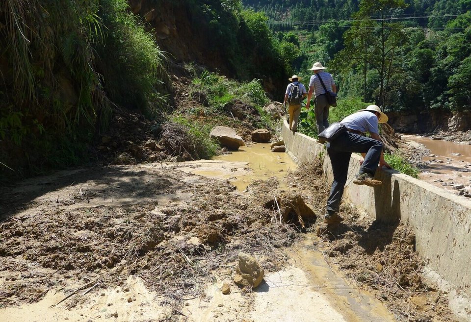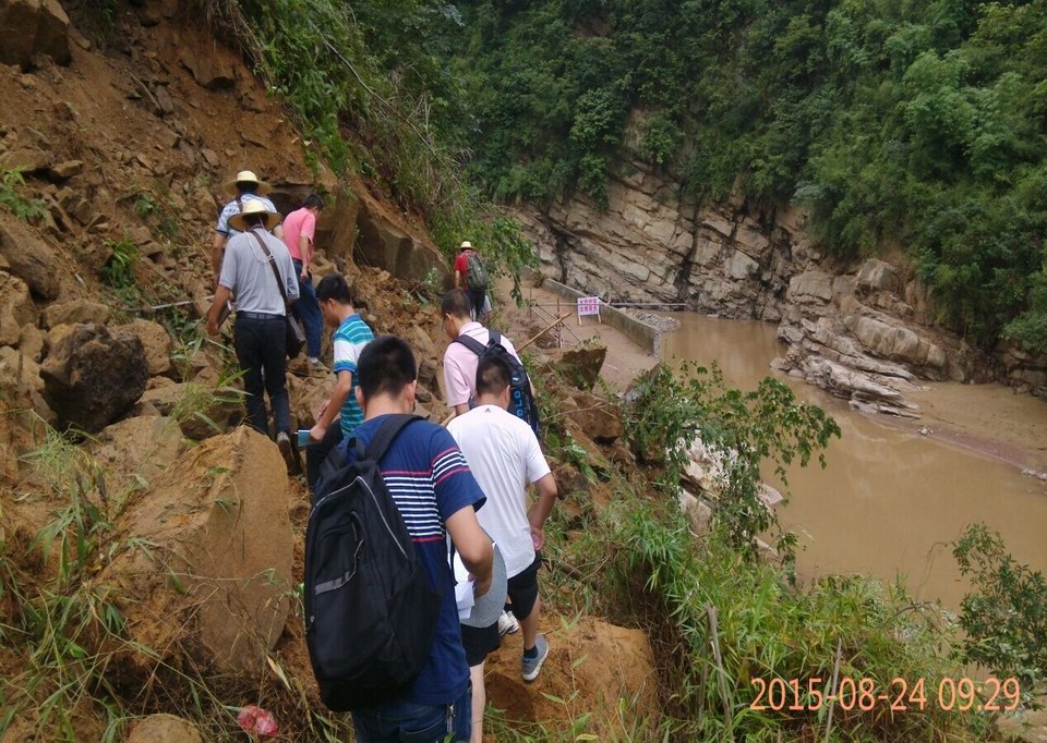 2015年8月16日,瀘州市敘永縣強(qiáng)降雨致使縣道010線兩河鎮(zhèn)~白臘鄉(xiāng)~高峰村段暴發(fā)多處泥石流、滑坡、水毀等重大地質(zhì)災(zāi)害,線路多處阻斷。在接到搶險通知后,我院迅速響應(yīng),立即組成搶險小組,由吳六政副院長帶隊,帶領(lǐng)總工辦、重慶分院、巖土分院等單位技術(shù)骨干奔赴災(zāi)區(qū)現(xiàn)場開展踏勘排查,全力配合瀘州市委、市政府、市交通運(yùn)輸局開展搶通保通工作。