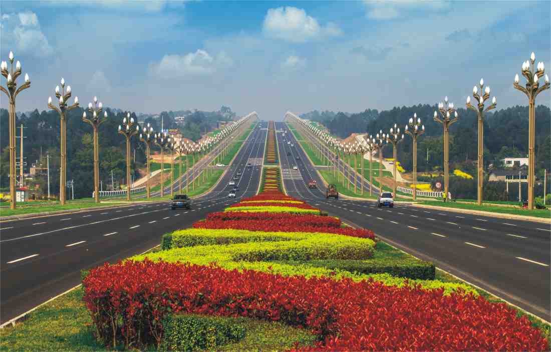 天府大道是成都市的主軸線,天府大道南延線由一、二、三期組成,總長近27公里,主道為雙向8車道,最高時速80公里。按高標準,善創(chuàng)新,優(yōu)景觀設計。